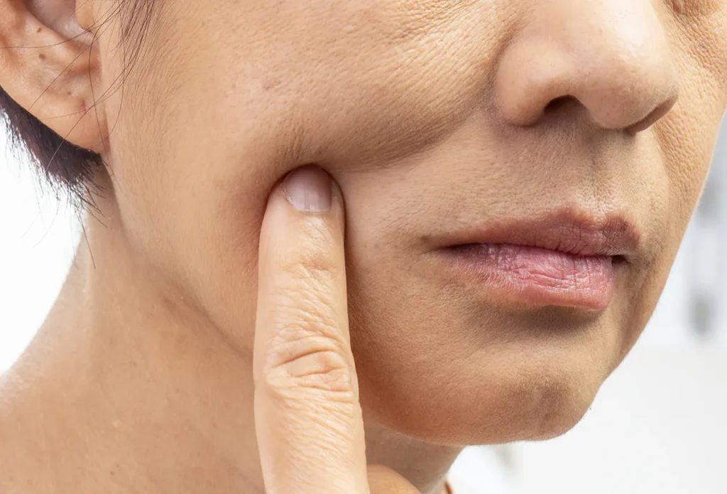 Volume loss occurs when facial fat pads shrink and collagen production decreases over time. This leads to: